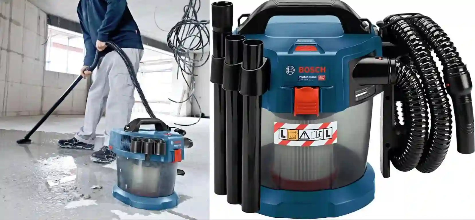 Denne støvsuger excellerer i alsidighed takket være dens evne til at håndtere både tørre og våde opgaver uden brug af pose, hvilket gør rengøringen hygiejnisk og økonomisk. Inklusionen af et HEPA-filter og dens L-klasse klassificering i henhold til EU-standarderne understreger dens evne til at fange selv de fineste støvpartikler, hvilket bidrager til et sundere arbejdsmiljø. Kompatibiliteten med Bosch Click & Clean System og alle Bosch Professional 18V-batterier og -ladere sikrer, at den nemt integreres i eksisterende værktøjssæt.